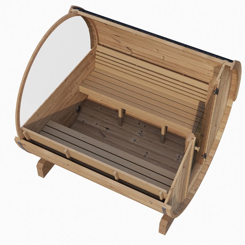 ERGO Series Barrel Sauna is 87"D x 81"H (Diameter) with a Rear Window.